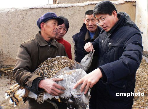 2月9日,一只國(guó)家一級(jí)瀕危保護(hù)鳥類在滄州被成功救治。大年初一上墳祭祖的河北黃驊常郭鄉(xiāng)齊趙村的齊延平老人在菜地里發(fā)現(xiàn)了一只受傷的大鳥,出于對(duì)保護(hù)鳥類的重視齊延平老人將受傷的大鳥抱回了家中,出于好奇前來觀看的鄉(xiāng)親們中間有人通過互聯(lián)網(wǎng)得知了這是國(guó)家一級(jí)瀕危保護(hù)鳥類大鴇,于是齊延平老人通過多方打聽終于在大年初三這天聯(lián)系到了滄州師專生物系教授、滄州野生動(dòng)物救護(hù)中心負(fù)責(zé)人孟德榮,孟教授當(dāng)即從滄州乘出租車趕到100公里外齊延平老人家前來接治受傷大鴇。據(jù)孟教授介紹,這只大鴇翅膀出現(xiàn)了不同程度的撕裂傷,其受傷主要原因是因?yàn)檎`食了有毒食物所致,目前受傷大鴇以被接回滄州野生動(dòng)物救護(hù)中心進(jìn)行進(jìn)一步的救治。中新社發(fā) 楊志濤 攝
