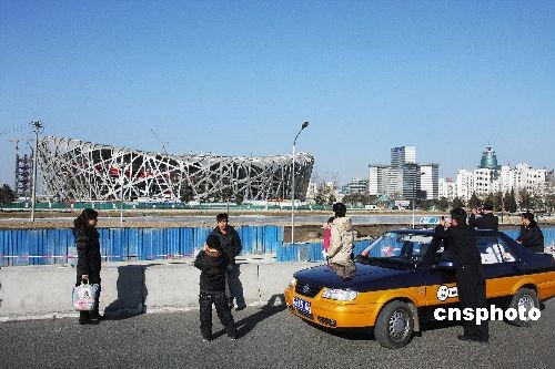 2月16日,位于國(guó)家體育場(chǎng)--鳥巢南側(cè)的北辰橋上大批市民在拍照留念,形成一道獨(dú)特的風(fēng)景線。因高架橋上視野開闊,角度頗佳,所以吸引了眾多拍照者在此駐足留影。圖為一出租車司機(jī)也停車在此拍照欣賞一番這獨(dú)特的風(fēng)景。中新社發(fā) 鄭雄增 攝