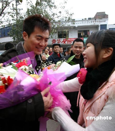 2月18日上午,著名足球解說員黃健翔在父親黃西孟和叔公黃振淳等親屬的陪同下,回到祖輩們居住過的重慶市永川區(qū)五間鎮(zhèn)新建村舊居,受到了鄉(xiāng)親們的夾道歡迎,同時到曾祖父黃大暹的墓冢前祭拜。中新社發(fā) 陳仕川 攝