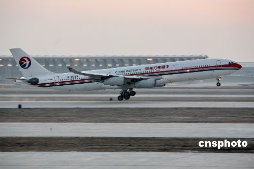 二月十九日清晨,中國東方航空公司的一架空客A三四○-三○○大型客機在上海浦東國際機場第三跑道試飛成功,這標志著歷時近兩年建設的浦東機場第三跑道工程,已全面具備了飛行營運條件。據悉,浦東國際機場第三跑道將于今年三月正式啟用,屆時將可起降目前全球最大型的A三八○客機。中新社發(fā) ;萦 攝