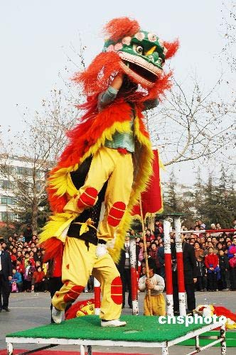 2月20日,山東淄博周村區(qū)舉行元宵節(jié)民間藝術(shù)文藝匯演,震天的鑼鼓、歡快的秧歌、威武的獅子、翻飛的龍燈以及劃旱船、抬芯子、跑竹馬等民間藝術(shù)形式一一上演,讓人們熱熱鬧鬧過元宵。中新社發(fā) 董乃德 攝