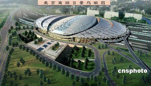北京南站計劃于4月25日進入機電設(shè)備調(diào)試,6月26日基本完工全面進入試運行,8月1日開通運營。圖為北京南站效果圖。中新社發(fā) 張宇 攝