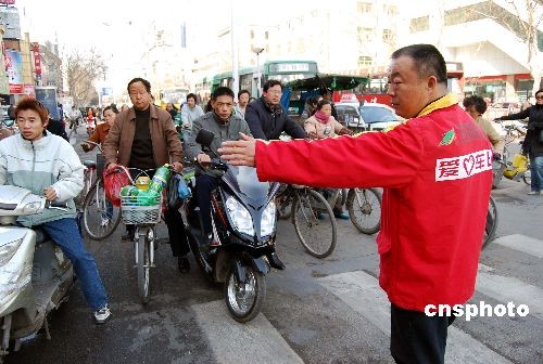 3月4日,一名交巡警對(duì)“愛(ài)心車(chē)隊(duì)”的哥進(jìn)行“崗前”培訓(xùn)。當(dāng)日,江蘇省鎮(zhèn)江市“愛(ài)心車(chē)隊(duì)”的哥的姐,來(lái)到該市京口區(qū)道口“客串”交巡警。他們通過(guò)崗位執(zhí)勤、發(fā)放宣傳資料等形式,用實(shí)實(shí)在在的角色轉(zhuǎn)換與體驗(yàn),進(jìn)一步增強(qiáng)維護(hù)道路交通安全和良好交通秩序的自覺(jué)性。中新社發(fā) 汪永祥 攝