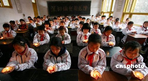 3月4日,重慶市永川區(qū)萱花小學(xué)在3.5周恩來總理誕辰110周年紀(jì)念日來臨之際,在校園開展了“深切緬懷周總理”為主題的班會活動,學(xué)生們通過詩歌朗誦、燭光、網(wǎng)上寄哀思等形式,表達(dá)對周總理的緬懷和思念之情。旨在以周總理的精神激勵學(xué)生們從小樹立遠(yuǎn)大理想,增強愛國情懷。中新社發(fā) 陳仕川 攝