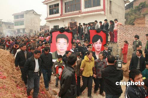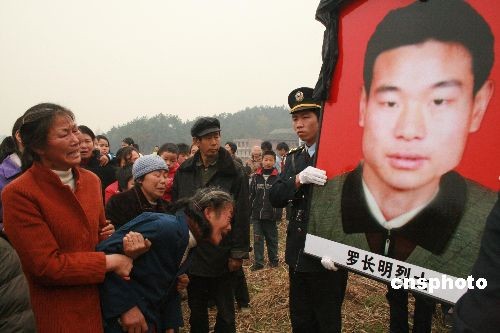 3月4日,羅海文、羅長(zhǎng)明、周景華三位抗冰搶險(xiǎn)烈士骨灰送行儀式在長(zhǎng)沙市明陽山殯儀館舉行。當(dāng)日上午,湖南省漣源市白馬鎮(zhèn)楊世村的父老鄉(xiāng)親早早在村口等待,當(dāng)載著羅海文、羅長(zhǎng)明兩英烈骨灰盒的靈車一出現(xiàn),鄉(xiāng)親們用震天的鑼鼓和齊鳴的鞭炮迎接英雄魂歸故里。