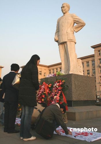 圖:天津大學(xué)生紀(jì)念周恩來誕辰110周年