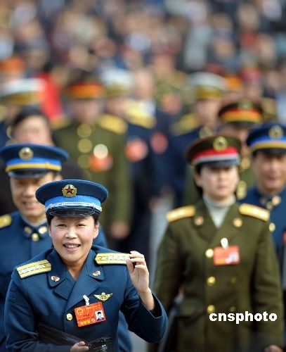 3月11日下午,十一屆全國人大一次會議在北京人民大會堂舉行第四次全體會議,解放軍代表程曉健赴會。程曉健29歲就成為全國人大代表,已連任四屆。20多年搏擊藍天,6種機型,3000多小時的飛行履歷,已把她鍛造成為數(shù)不多的空軍特級女飛行員。中新社發(fā) 廖攀 攝