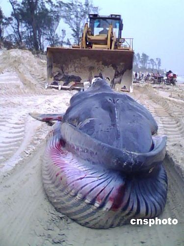 圖:重約二千斤的鯨魚(yú)在海南文昌擱淺死亡