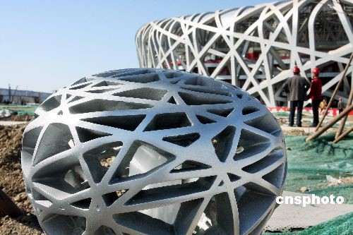 3月13日,中國國家體育場“鳥巢”正在加緊內(nèi)部裝修,北京奧運場館和設(shè)施四月底前將全部竣工或完工圖為國家體育場“鳥巢”周邊安裝好的“小鳥巢”路燈與大“鳥巢”相映成趣。中新社發(fā) 鄭雄增 攝