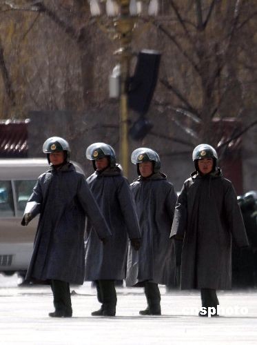 3月21日,武警在拉薩布達拉宮廣場上執(zhí)勤。當日,拉薩市區(qū)降下一場中雪。中新社發(fā) 廖攀 攝