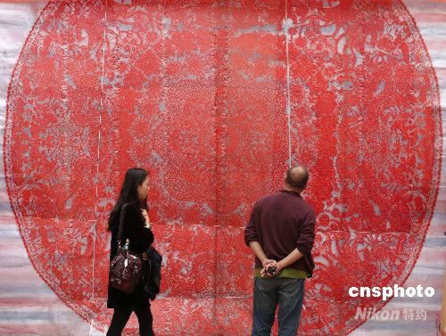 圖:巨型剪紙亮相洛陽牡丹花會