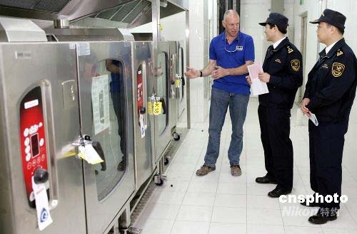 近日,北京海關(guān)在媒體村對(duì)一批奧運(yùn)物資進(jìn)行現(xiàn)場驗(yàn)放。該批物資為奧運(yùn)會(huì)所需的廚房設(shè)備,共計(jì)3個(gè)集裝箱。北京海關(guān)組織24小時(shí)的現(xiàn)場支持,到運(yùn)動(dòng)員村,媒體村,國際廣播中心和新聞媒體中心等各個(gè)現(xiàn)場對(duì)貨物進(jìn)行查驗(yàn)。中新社發(fā) 雷虹 攝