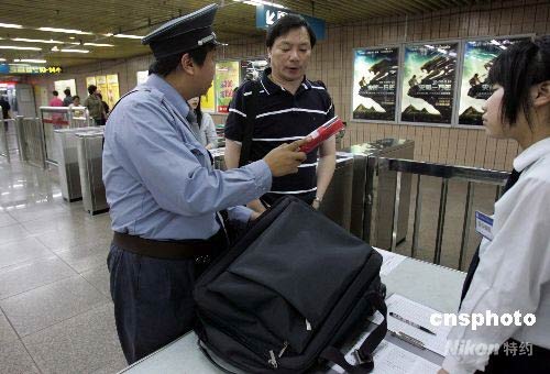 5月10日上午,在上海徐家匯地鐵站的安全檢查通道,一乘客因攜帶危險物品被勸說退票。從今天起,上海軌道交通所有車站開辟專用安全檢查通道,由專人全天候逐一對乘客攜帶的箱包進行安全檢查,據了解,從4月15日至今,上海軌交查堵危險品1200余件。主要有液化氣鋼瓶、煙花、油漆、裝修膠水等,其中,依法對700余名違法攜帶危險物品的人員依法做出行政處罰。中新社發(fā) 潘索菲 攝