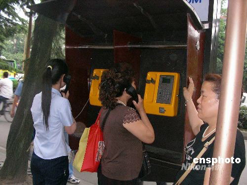 四川汶川地震 成都市民排隊(duì)打電話報(bào)平安