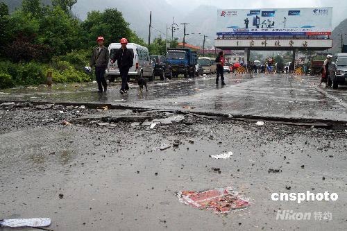 圖:重災(zāi)區(qū)北川道路裂縫嚴(yán)重