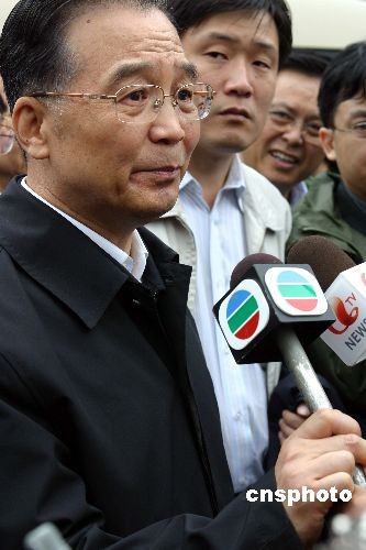 圖:溫家寶在北川指揮現(xiàn)場答香港記者提問