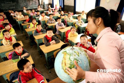 5月15日上午,四川華鎣市雙河二小的學(xué)生在聽取老師講解地球知識。當(dāng)日,在四川省汶川5.12持大地震災(zāi)害中波及受災(zāi)、己停課兩天半的華鎣市,經(jīng)嚴(yán)格檢查鑒定符合安全要求的學(xué)校全面復(fù)課,并向?qū)W生傳授地球和震災(zāi)避險自救知識,提高其自我保護(hù)能力。中新社發(fā) 邱海鷹 攝