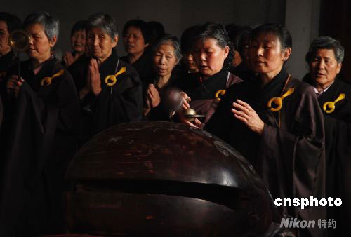 5月15日,江蘇無錫南禪寺舉行賑災(zāi)祈福吉祥法會。地震發(fā)生后,中國國家宗教局十三日立即向受災(zāi)地區(qū)捐款,同時向在北京的全國性宗教團體等發(fā)出通知,號召他們緊急開展向地震災(zāi)區(qū)捐款活動。中新社發(fā) 楊慧峰 攝