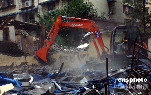 圖:四川都江堰市危樓排險工作緊張進行