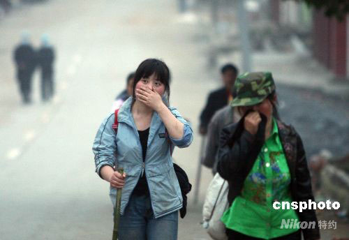 5月15日晚,幾名在距離紅白鎮(zhèn)鎮(zhèn)街幾十公里的西部神奇歡樂谷景區(qū)工作的人員步行逃出山區(qū)。12日發(fā)生的汶川大地震波及四川省德陽市下轄的什邡市(縣級市)的多個鄉(xiāng)鎮(zhèn),紅白鎮(zhèn)與外界交通、通訊被完全阻斷。15日下午16時許,外界到紅白鎮(zhèn)鎮(zhèn)街的道路被打通。中新社發(fā) 郭晉嘉 攝