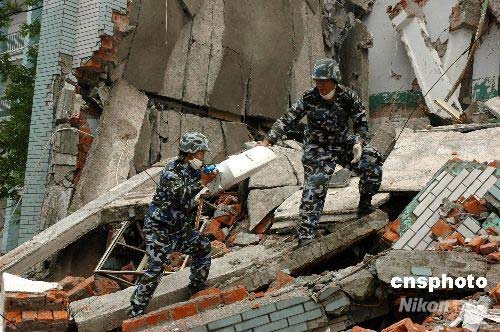 5月16日, 2750名海軍陸戰(zhàn)隊(duì)官兵分三個(gè)梯隊(duì)相繼順利到達(dá)四川地震災(zāi)區(qū),立即展開救援行動(dòng)。第一梯隊(duì)到達(dá)綿竹縣漢旺鎮(zhèn)的760名官兵在災(zāi)情最嚴(yán)重的地方進(jìn)行搶險(xiǎn)救援,并在救援中使用了生命探測儀。目前,世界上只有美國和英國有這樣的生命探測儀,地震災(zāi)區(qū)中海軍官兵使用的是中國自行研制的,僅在漢旺鎮(zhèn),他們就有5臺(tái)這樣的儀器。圖為海軍陸戰(zhàn)隊(duì)官兵在四川綿竹縣漢旺鎮(zhèn)使用生命探測儀進(jìn)行搜救。中新社發(fā) 李唐 攝