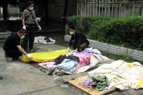 2008年5月16日,四川都江堰市蒲陽路附近一個(gè)小區(qū),死者家屬在肅穆氣氛中為死者準(zhǔn)備出殯事宜,死亡者未能避開5月12日中國汶川大地這場(chǎng)劫難,其遺體剛從地震廢墟中刨出。中新社發(fā) 鄒憲 攝