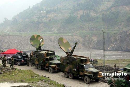 圖:汶川地震災(zāi)區(qū)架設(shè)通信機站協(xié)助救援