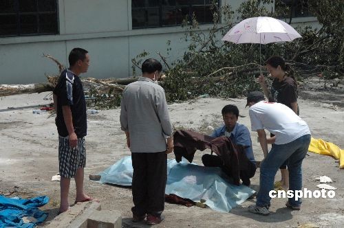 53歲的四川綿竹東方汽輪機(jī)廠女職工王發(fā)珍創(chuàng)造了生命最光輝奇跡,她在汶川大地震當(dāng)天被埋在六層樓房下,七天之后的5月19日上午被搶救出來(lái),還呼喊著救命,但終因搶救無(wú)效死亡。圖為她的兒子(右二)用一件衣服為母親遺體遮擋太陽(yáng),久久不愿離去。中新社發(fā) 肖龍聯(lián) 攝
