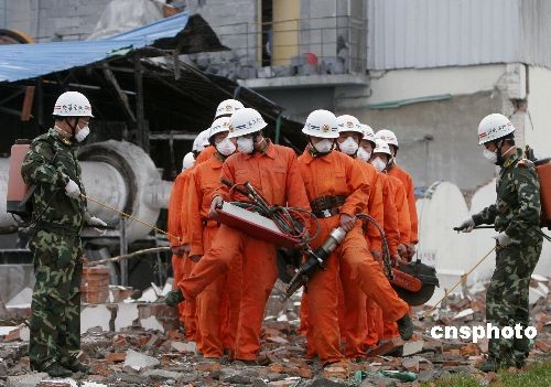 5月21日,救援部隊(duì)在四川省什邡市鎣華鎮(zhèn)、洛水鎮(zhèn)進(jìn)行消毒防疫。中新社發(fā) 張曉理 攝