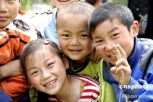 圖:汶川綿池鎮(zhèn)災區(qū)兒童露笑臉