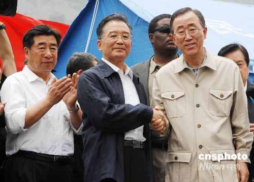圖:溫家寶與潘基文在汶川映秀鎮(zhèn)會(huì)面