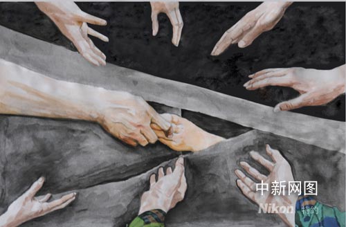 湖北畫家根據(jù)四川救災(zāi)情景描繪《八方支援》圖