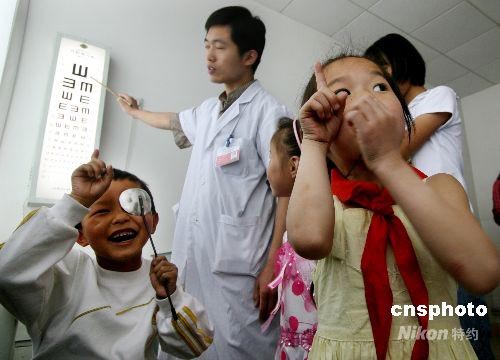 圖:災(zāi)區(qū)孩子在山東濰坊體檢迎六一
