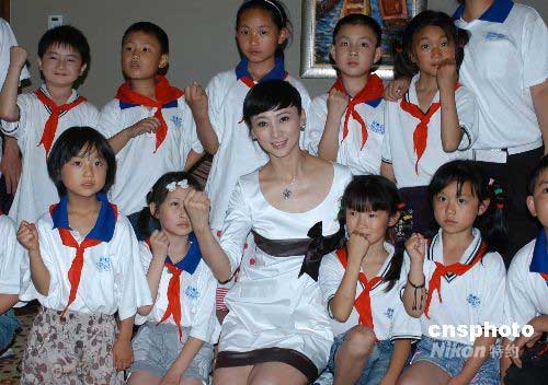 6月2日,89名來自四川北川、彭州、寶興、崇州等地震災(zāi)區(qū)失去親人的兒童飛抵海南三亞,進(jìn)行為期半個(gè)月的“愛心呵護(hù)、陽光行動(dòng)”心靈呵護(hù)之旅。港星翁虹當(dāng)天看望這些來自災(zāi)區(qū)的孩子,還與孩子們一起在當(dāng)晚舉行的瓊川兩地兒童聯(lián)誼晚會上表演節(jié)目。圖為翁虹與來自災(zāi)區(qū)的孩子們在一起。中新社發(fā) 尹海明 攝