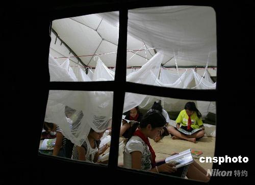 圖:地震災(zāi)區(qū)的孩子在帳篷學(xué)?炭嘁棺x