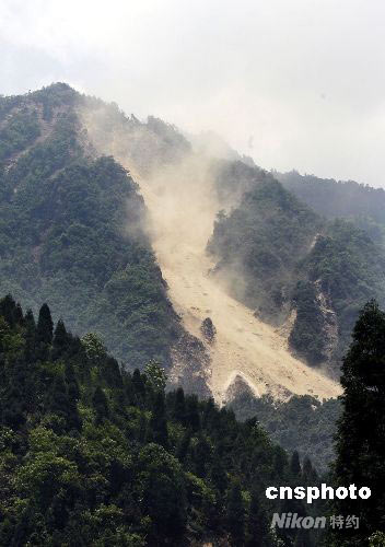 六月四日,位于四川省彭州市境內(nèi)的龍門山銀廠溝附近再次發(fā)生余震及山體滑坡。距離成都市區(qū)二十公里的彭州以旅游業(yè)為經(jīng)濟(jì)命脈,在龍門山鎮(zhèn)大山深處的銀廠溝海拔兩千余米,是國家級著名風(fēng)景區(qū)。龍門山大斷點(diǎn)、龍門山后斷裂、龍門山主斷裂、龍門山邊緣斷裂,這幾條斷裂帶是這次汶川特大地震和達(dá)七千次余震的策源地之一。而龍門山鎮(zhèn)與震中汶川僅一山之隔,站在銀廠溝旁的龍頭山上,就能俯瞰汶川縣城。中新社發(fā) 慎重 攝