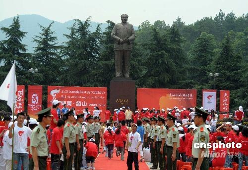 6月5日,奧運圣火湖南湘潭、韶山站傳遞結束慶典,在韶山的毛澤東銅像廣場舉行。儀式結束后,民眾仍久久不愿離去。中新社發(fā) 廖攀 攝