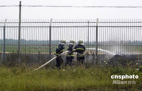 6月5日,湖北襄樊消防官兵緊急出動(dòng)撲滅機(jī)場跑道大火。當(dāng)天,襄樊機(jī)場飛行區(qū)因周邊農(nóng)民焚燒麥秸,引起跑道一千多平方米的草坪失火,所幸當(dāng)天該機(jī)場飛至廣州的航班已經(jīng)飛離機(jī)場,加之撲救及時(shí),沒有造成嚴(yán)重后果。中新社發(fā) 楊勁松 攝