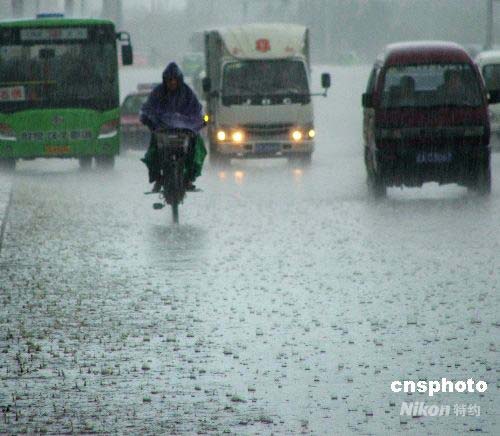 6月7日中午,沈陽市區(qū)出現(xiàn)降水天氣,一時間大雨如潑,給出行的市民帶來極大不便。涼爽的氣溫為參加高考的考生送來一個清爽的高考日。中新社發(fā) 王齊波 攝