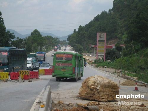 近日,廣東連日的強(qiáng)降雨造成國(guó)道321線肇慶境內(nèi)沿線至少有4起以上大、小山體滑坡,由于當(dāng)?shù)毓凡块T(mén)及時(shí)搶修,并采取部分路段單向行駛的措施,該路段未造成車(chē)輛堵塞現(xiàn)象。中新社發(fā) 黃耀輝 攝
