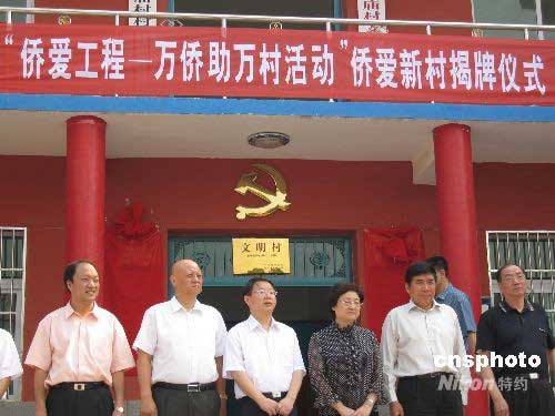 6月12日,國務院僑辦主任李海峰在陜西省北雙廟村參加全國第一個“僑愛新村”揭牌儀式,同時參加揭牌儀式的還有西安市市長陳寶根、國務院僑辦國內(nèi)司司長程鐵生、唐仲英基金會代表孫幼帆先生。中新社發(fā) 張珂 攝