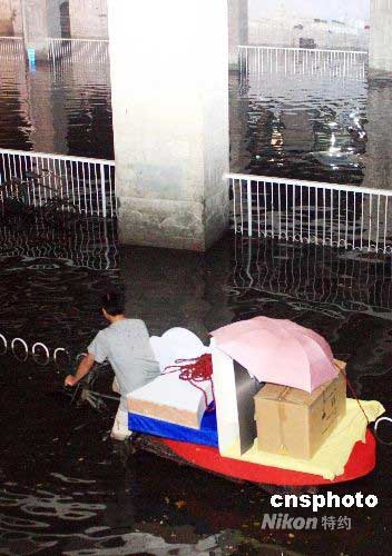 6月13日晚,警察站在水中望著被雨水淹沒的汽車。當(dāng)日傍晚,北京突降雷暴雨,造成部分道路積水。北京知春路地鐵站橋下雨水囤積比較嚴(yán)重,多輛汽車被水淹沒,在警察指揮下行人有序通過馬路。截至發(fā)稿已是夜間十一點(diǎn),雨水還未排干,公安干警、交警、消防隊(duì)等部門仍在雨中忙碌。中新社發(fā) 王昊(北京) 攝