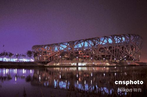奧運(yùn)離中國(guó)國(guó)人越來(lái)越近,6月下旬,奧運(yùn)主要場(chǎng)館——“鳥巢”因加緊調(diào)試燈光系統(tǒng)而停止外部的照明,但加緊開幕式排演的燈光卻要亮到深夜。 中新社發(fā) 楊佐桓 攝
