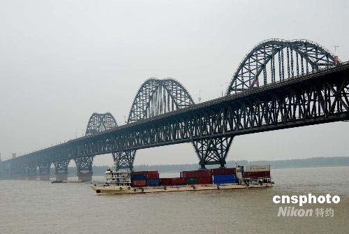 受第6號(hào)臺(tái)風(fēng)“風(fēng)神”影響,江西省連日遭強(qiáng)降雨襲擊,導(dǎo)致長(zhǎng)江江西九江段水位持續(xù)上漲。6月27日,一艘大型貨輪通過九江長(zhǎng)江大橋時(shí),水位到達(dá)17.3米。雖然距離警戒水位20米還有一定的距離,但由于上游長(zhǎng)時(shí)間的降雨,長(zhǎng)江江西九江段的水位目前正以每天20厘米的高度上漲。九江市各相關(guān)部門已經(jīng)做好準(zhǔn)備隨時(shí)應(yīng)對(duì)各種突發(fā)事件。中新社發(fā) 胡國(guó)林 攝