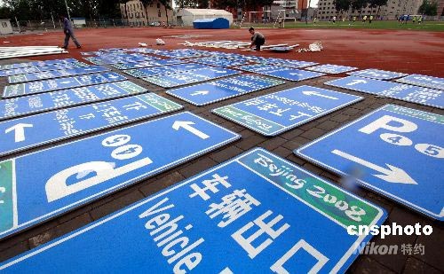 圖:北京奧運場館緊張布置奧運相關(guān)設(shè)施