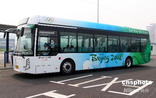 7月7日,專門為北京奧運會運動員、隨隊官員和注冊記者提供出行服務的1200輛奧運公交車,開始分批進入奧運村運行。這些車輛均為12米長的低地板無障礙空調(diào)新車,是尾氣排放達到歐IV標準的柴油車或純天然氣車、純電動車。圖為北京奧運純電力公交車。中新社發(fā) 富田 攝
