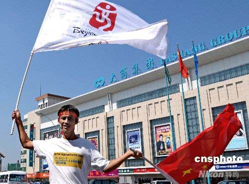 7月12日上午8時許,2008北京奧運(yùn)火炬在黑龍江省大慶市傳遞。眾多大慶市民前來為奧運(yùn)火炬吶喊助威。中新社發(fā) 濱海之光 攝
