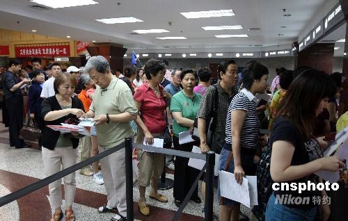 七月十四日,北京警方出入境管理處開始受理市民赴臺(tái)團(tuán)隊(duì)旅游《大陸居民往來臺(tái)灣通行證》及相關(guān)簽注申請(qǐng)。經(jīng)有關(guān)部門協(xié)商確定,自七月十八日起,正式啟動(dòng)大陸居民赴臺(tái)灣地區(qū)旅游。據(jù)了解,大陸居民赴臺(tái)灣地區(qū)旅游由指定的旅行社組織,以團(tuán)隊(duì)形式整團(tuán)往返,并實(shí)行配額管理。首批開放的區(qū)域有北京、天津、遼寧、上海等共十三個(gè)省、直轄市。中新社發(fā) 任海霞 攝