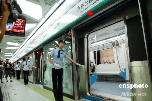 7月19日,北京地鐵10號線(一期)、奧運支線、機場線開通試運營儀式在地鐵10號線與奧運支線交匯的北土城站舉行。這三條線路是2008年北京奧運會的配套工程,同時也是北京市委、市政府方便廣大市民出行的一大重要舉措。10號線一期、奧運支線、機場線三條軌道新線總長計58公里軌道,開通后北京軌道運營里程已達到200公里,運營線路將達到8條,北京軌道交通的網(wǎng)絡效應將初步顯現(xiàn)。中新社發(fā) 富田 攝