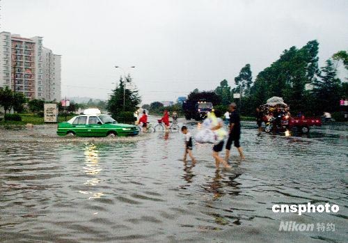 7月20日傍晚,四川眉山市遭受強暴雨襲擊。眉山市主城區(qū)兩小時內(nèi)的降雨量達到151毫米,造成城區(qū)多處內(nèi)澇。中新社發(fā) 堯遙 攝